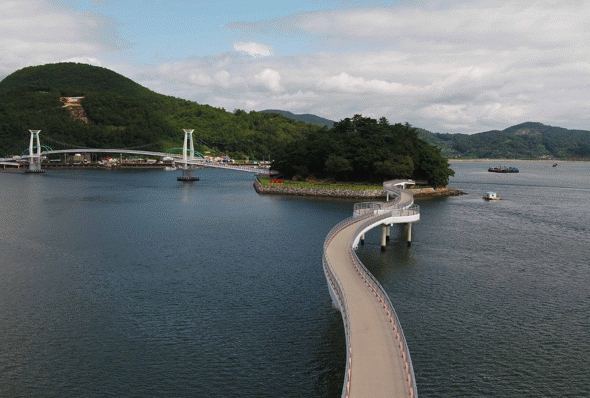 배알도 섬 정원은 무한한 여백으로 자유와 쉼을 선사하고 정상 해운정은 소나무, 쪽빛 바다, 포구 등을 한가득 담아내며 여행자들의 탄성을 자아낸다.