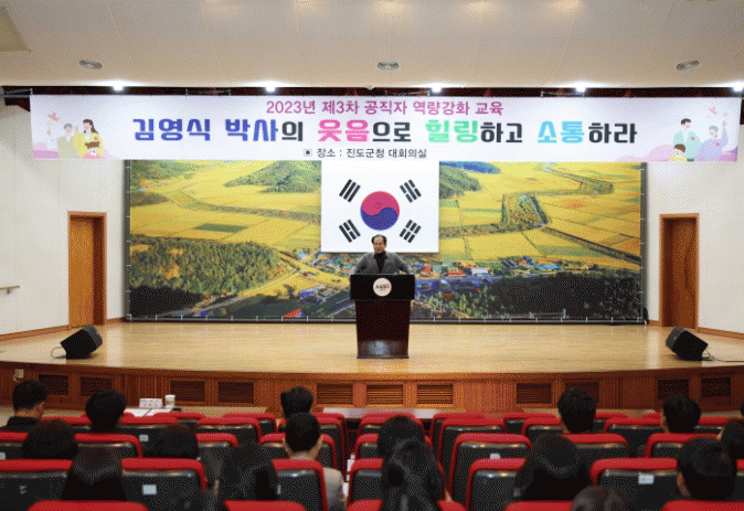 김희수 진도군수는 “이번 교육을 통해 경직된 직무환경에 지친 공직자들이 잠시나마 웃음을 통한 휴식할 수 있는 유익한 시간을 가졌길 바란다”며 “오늘 배운 웃음으로 친절행정을 실천하고 민원인과의 소통으로 감동을 줄 수 있는 진도군을 만들기 위해 노력하겠다”고 말했다.