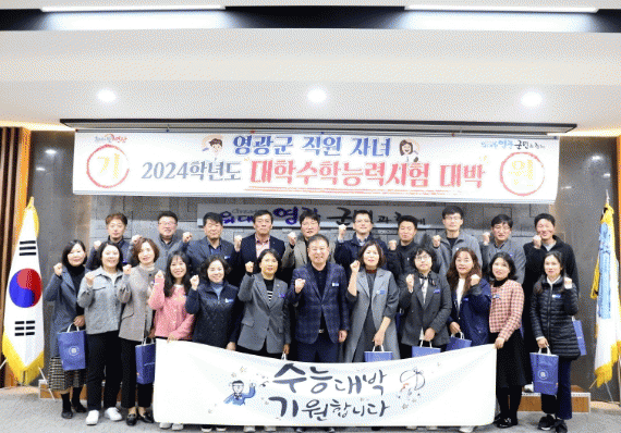 이날 강종만 영광군수는 수능 수험생 자녀를 둔 직원 28명(수험생 자녀 30명)에게 ‘수능 대박 기원 격려품’과 응원 메시지를 전달하고 일과 가정 모두 최선을 다해 준 직원들의 노고를 위로하는 시간을 가졌다.