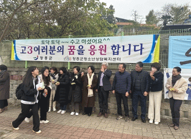 위수미 1388청소년지원단장은 “1388청소년지원단 위원들과 함께 대학수학능력시험을 치르는 모든 수험생들의 꿈을 응원하며 좋은 결과가 있었으면 좋겠다”며, “오는 11월 18일에 진행되는 장흥 마을교육공동체 어울림한마당 행사에도 우리 지역의 많은 청소년들이 참석해서 행복하고 즐거운 시간을 갖었으면 좋겠다”고 말했다.