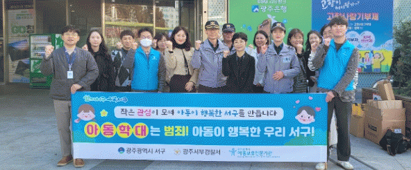 한편 서구는 아동학대에 신속하게 대응하기 위해 민.관.경(광주아동보호전문기관, 서부교육지원청, 서부경찰서) 협업을 통한 위기 아동 발굴, 사례판단회의, 합동점검, 아동학대 예방 교육 및 캠페인을 통해 아동보호체계 강화를 위한 노력을 펼치고 있다.