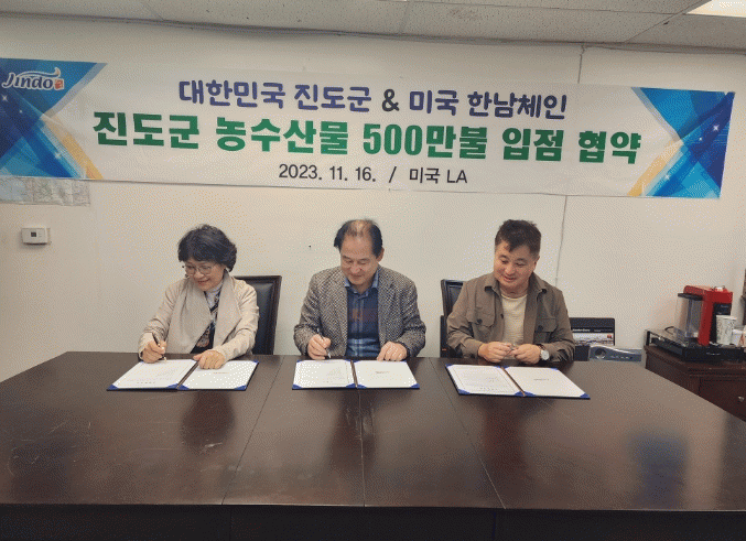 아울러 진도군은 이번 협약과 더불어 로스앤젤레스(LA) 한남체인, 샌프란시스코 메가마트 등 3개 매장에서 진도군 농수산물의 홍보와 판촉을 위한 할인행사를 진행한다.