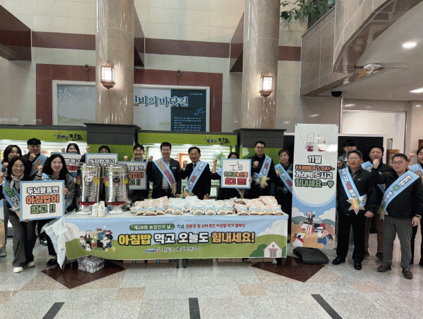 ‘아침 밥 먹기’ 운동은 공공기관 직원들과 초등학생 약 1,900여명을 대상으로 농업인의 날을 기념해 우리 쌀로 만든 앙금 가래떡과 친환경 잡곡을 전달했다.
