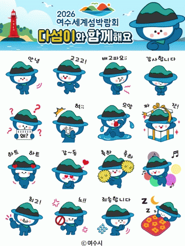 이모티콘은 지난해 개발된 2026여수세계섬박람회 EI(Event Identity) 디자인을 활용, 소셜 메신저 이용자들이 일상에서 친근하게 사용하는 동작 16종으로 구성됐다.