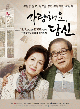 ‘사랑해요, 당신’은 평범한 일상 속 사랑을 잊고 살아가던 부부에게 치매라는 불청객이 찾아오자 진솔한 대화로 가족의 공감을 이끄는 내용이며, 여러 드라마를 통해 익숙한 베테랑 중견 배우 장용과 오미연의 열연으로 펼쳐지는 연극이다.