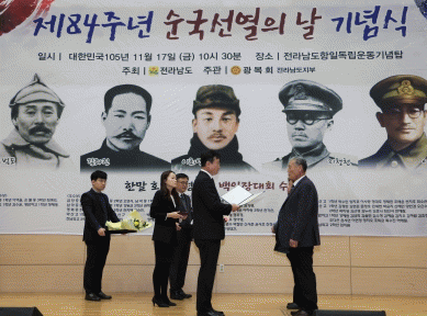 전남도는 올해 독립유공자 유족 보훈명예수당을 신설하고 의료비 지원을 확대했다. 광역자치단체 최초로 독립운동 미서훈자 발굴사업을 추진하는 등 의향 전남 정신 계승·발전에 노력하고 있다.