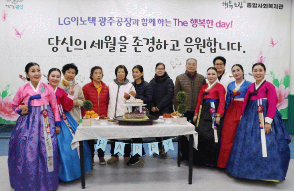 행사에는 LG이노텍 광주공장 임직원이 참여해 어르신 50여 명에게 푸짐한 생일상을 제공했다.