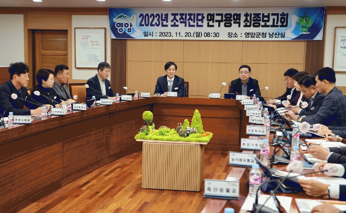 분석에서 영암군은 ▲팀 세분화로 인한 업무 연계성 저하 및 협업의 어려움 ▲결원에 따른 과소 팀 발생으로 인한 직원 업무 부담 증가 ▲시설통합관리와 민간위탁 등 정책환경 변화 대응 ▲인구소멸, 고령화, 상권활력 저하에 따른 위기의식 등이 문제점으로 제기됐다.