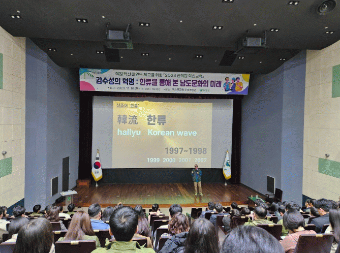 이어 김종휘(前 서울문화재단 대표)가 ‘감수성의 혁명 : 한류를 통해 본 남도문화의 미래’라는 주제로 K-문화가 전 세계적으로 인기있는 현재의 상황을 1세대 문화기획자의 시각으로 해석하고 공감하며 활용하는 방안에 대해 교육했다.