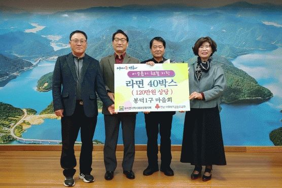 안경아 유치면장은 “유치면과 마을을 위해 항상 힘쓰고 계신 봉덕1구 마을회에 감사드린다”며 “따뜻한 마음으로 전해주신 기탁품은 연말연시 나눔의 손길이 필요한 이웃에게 잘 전달하겠다”고 말했다.
