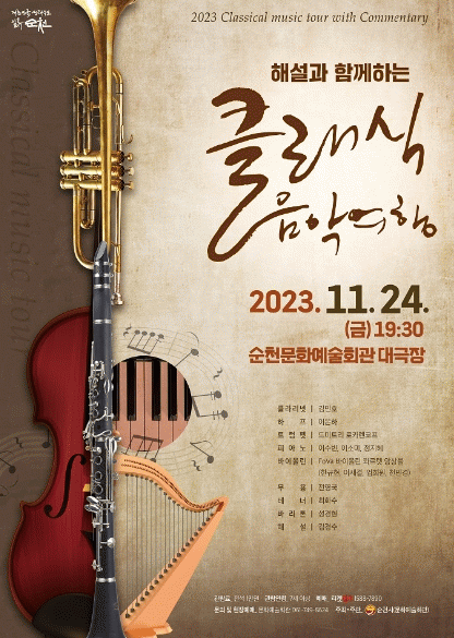 순천문화예술회관 관계자는 “해설과 함께하는 클래식 음악 여행에 지역 예술 애호가들을 초대한다”며 “음악의 세계로 함께 떠나서 즐겁고 행복한 시간이 되시길 바란다.”고 말했다.