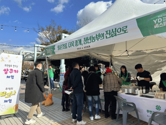 무안군4-H연합회는 농업기술센터가 지원한 공동 과제답에서 생산한 쌀로 만든 가래떡과 고구마를 판매하며, 쌀 쿠키 만들기와 클로버 달고나 뽑기 체험을 운영했다. 더불어, 청년 농업인대학생들도 작은 카페를 운영하며 직접 재배한 쪽파와 쪽파 크림치즈 베이글, 커피 등의 간식거리를 판매해 이번 축제에서 먹을거리와 즐길거리를 풍성하게 했다.