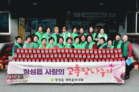 송미숙 장성읍 새마을부녀회장은 “회원들과 함께 담근 고추장을 이웃과 나눌 수 있어 뿌듯하다”며 “앞으로도 살기 좋은 장성읍을 만들기 위해 힘을 보태겠다”고 말했다.