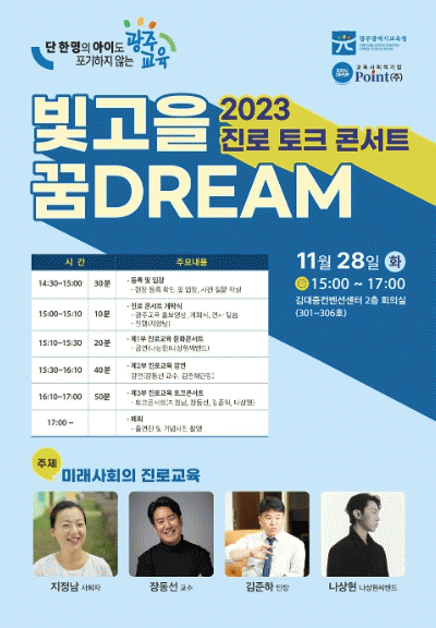 이번 콘서트는 ‘미래 사회의 진로 교육’을 주제로 미래 교육의 권위자인 한양대 장동선 교수, 인공지능산업융합사업단 김준하 단장의 진로 교육 강연이 진행된다.