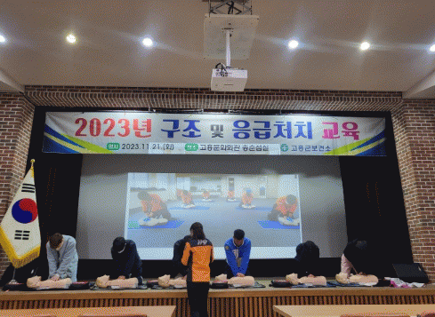 이번 교육은 응급상황 발생 시 대처 능력을 향상시키기 위해 심정지 및 기도 폐색 시 구조활동을 할 수 있도록 심폐소생술·하임리히법·자동심장충격기 사용법 등 마네킹을 활용한 실습 형태로 진행됐다.
