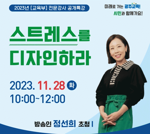 강연자인 방송인 정선희는 CBS TV ‘세상을 바꾸는 시간, 15분’, SBS ‘TV 동물농장’, MBC 표준FM ‘지금은 라디오시대’ 등에 출연하며 활발하게 활동 중이다.