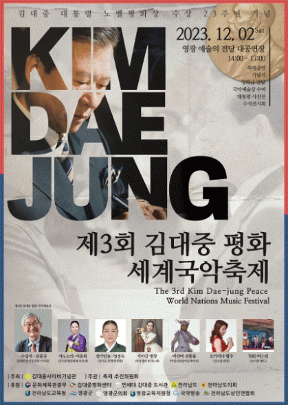 특히, 금년에는 ‘1회 김대중 평화 국악예술상’이 제정되어, 50여 년 동안 우리나라 문화와 국악발전에 헌신해 오신 김종규 선생이 처음 수상하게 되어 더욱 의미 있다.