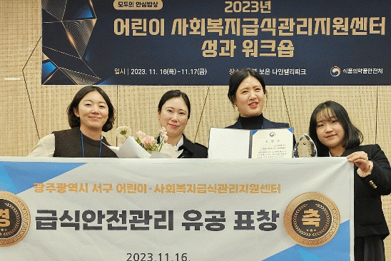 이번 수상은 지자체가 운영하는 전국 236개 급식관리지원센터 중 6개소를 선정했으며, 광주에서는 서구 어린이·사회복지급식관리지원센터가 유일하다.