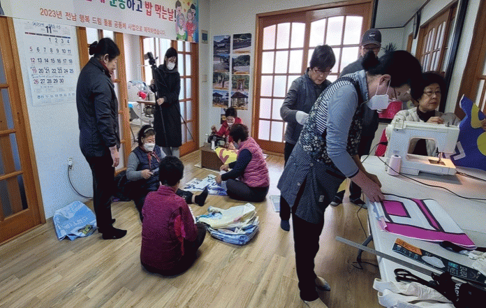 장흥군 농어촌신활력센터와 협업을 통해 군에서 폐현수막 1,300매를 제공하고 장흥읍 행원1구, 관산읍 우산리, 부산면 용반리의 마을공동체사업 주민 33명의 손길이 더해져 폐현수막의 화려하게 변신했다.
