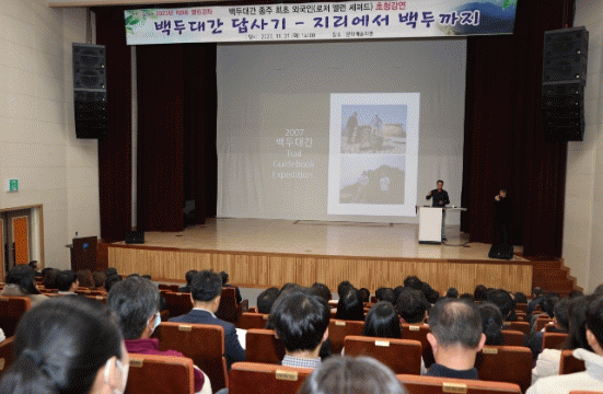 이날 강연에서 로저 앨런 셰퍼드는 남과 북의 백두대간을 종주하면서 촬영한 백두산·개마고원 ·금강산 등 북한의 산 사진과 지리산·백록담·덕유산 등 남한의 산 사진을 선보였다. 그리고 백두대간을 종주하면서 만난 남과 북의 사람들에 관한 이야기도 들려줬다.