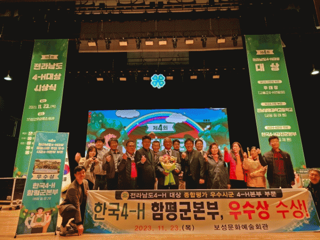 장갑기 한국4-H함평군본부 회장은 “4-H대상은 회원과 지도자들의 자긍심과 영예를 높이며 4-H회 육성의 결실을 맺는 뜻깊은 자리다”며, “회원들께서 함께해주시고 노력해주셨기에 이번 수상을 할 수 있었다”고 전했다.
