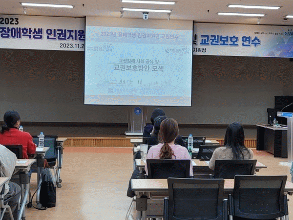 동부교육지원청에 따르면 광주 관내 유·초·중학교 교사 중 희망자를 대상으로 한 이번 연수는 장애 학생의 특수성으로 인해 교육활동 침해에 노출되기 쉬운 현장 특수교사들의 고충과 교권 침해 사례를 파악하고, 개정된 ‘교권보호 4법’ 등 정책적 지원 방안을 알아보는 시간으로 진행됐다.
