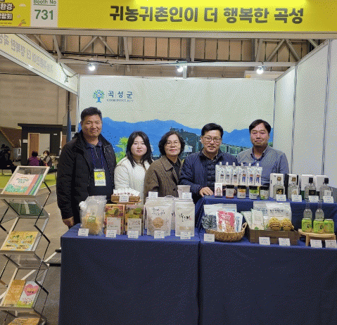 전시홍보 부스에서는 지역 내 귀농인과 청년농업인이 직접 생산한 곡성의 다양한 농특산품을 전시했다. 전시된 농특산품들 중에는 백세미, 토란과 토란가공품, 발효식초, 멜론 막걸리, 다양한 과일주스, 유기농 현미, 오색미 등이 방문객들의 주목을 받았다.
