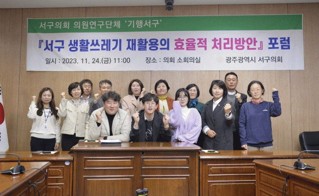포럼은 연구단체의 정책연구과제였던 ‘서구 생활쓰레기 재활용의 효율적 처리방안’에서 제안된 ▲재활용에 대한 시민의식 개선 홍보강화▲지역사회와 주민의 합리적 거버넌스 구축 ▲주민참여형 릴레이 중고 플리마켓 운영 ▲자원순환을 위한 시민 환경전문가 양성 ▲재활용 관리를 위한 배출구역 유도라인 및 클린하우스 설치.확대 ▲AI 무인회수기 설치.확대에 대한 논의를 하기 위해 마련됐다.