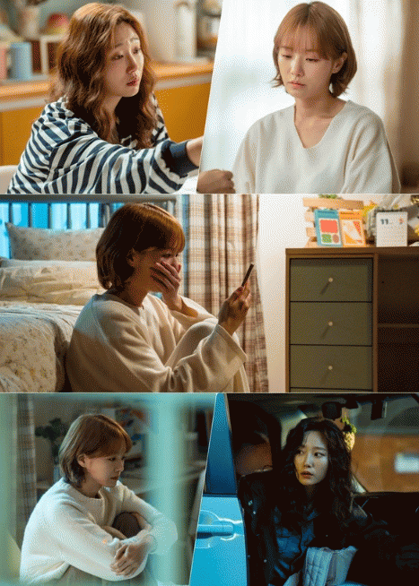 그런 해나 곁을 든든히 지키던 유나는 전 남친 오상수(이승준 분)로 인해 해나가 이런 상황에 놓인 것이라고 자책한다. 오직 동생 해나를 향한 걱정뿐인 언니 유나는 얼마나 눈물을 흘린 것인지 눈이 퉁퉁 부어 있다. 그녀의 울먹이는 눈에서 슬픔 정도가 고스란히 느껴진다.
