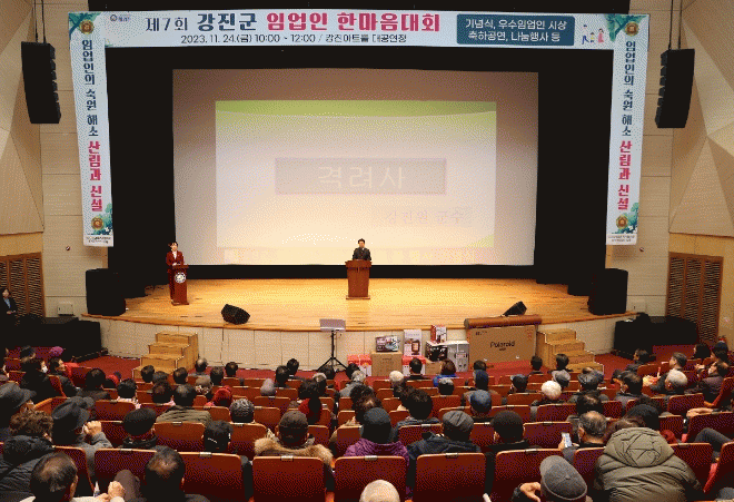 이날 행사는 식전행사와 개회식, 축하공연, 나눔행사로 진행됐으며 그동안 임업발전을 위해 노력한 우수임업인에게 표창장과 감사패를 수여했다. 윤동길, 이규철, 김효숙, 김은, 고성정 씨가 강진군수 표창을, 서호성, 최영환 씨가 국회의원 표창을 받았으며, 윤용기, 김영광 씨가 강진군 의장상, 한홍수, 정한규 씨가 산림조합중앙회장 표창을 각각 받았다. 감사패는 강진군 산림조합 정환석 과장과 강진군청 해양산림과 송평강 주무관에게 수여됐다.