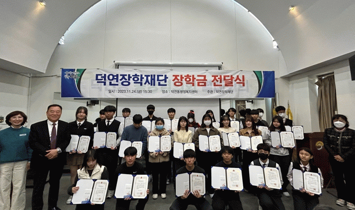 이날 행사는 (재)덕연장학재단 김주철 이사장과 덕연동 관내 시의원, 통장협의회 관계자, 장학생, 학부모 등 100여 명이 참석한 가운데 장학증서 수여식이 진행됐다.