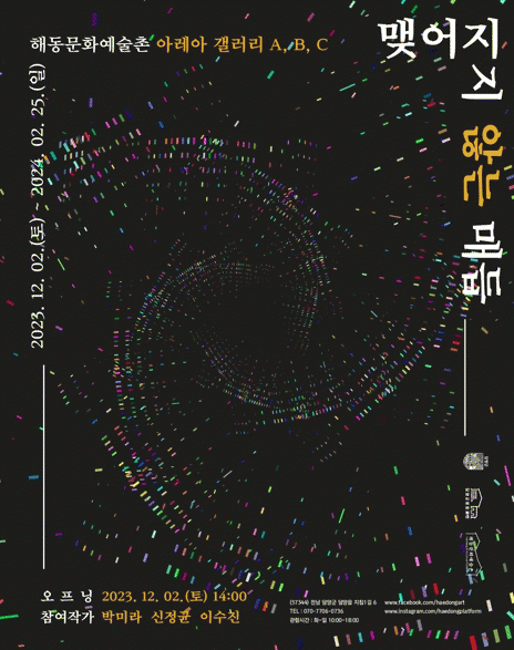 전시는 내년 2월 25일까지 진행되며, 오픈식은 12월 2일 토요일 오후 2시 해동문화예술촌에서 참여작가와 관람객이 소통하는 자리로 마련된다.