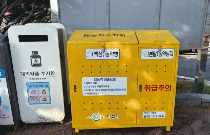 나주시는 환경 오염 주범이자 생활계 유해폐기물인 ‘폐농약’ 전용 수거함을 읍·면·동 행정복지센터 20곳에 설치·운영한다고 27일 밝혔다.