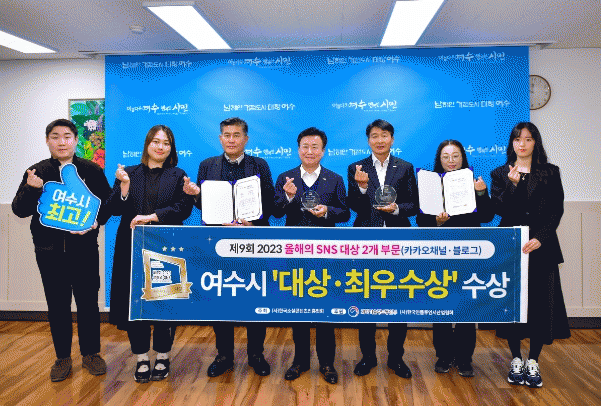 여수시가 지난 10월 '제13회 2023 대한민국 SNS 대상'에서 8년 연속 최우수상을 수상한데 이어, ‘제9회 2023 올해의 SNS’에서도 카카오 채널과 블로그 부분에서 각각 대상과 최우수상을 수상하게 된 것.