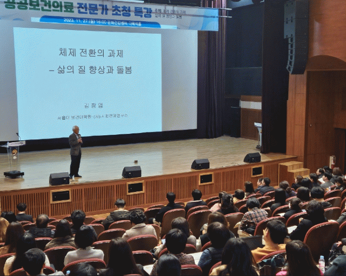 김 교수는 ▲한국 사회경제체제의 변화 추세 ▲ 국가적 인구감소에 대한 관점 ▲포괄적 노인 돌봄 체계 구상 ▲삶의 질 기반의 새로운 패러다임 등을 주요 내용으로 공공의료의 구체적인 방향을 제시했다.