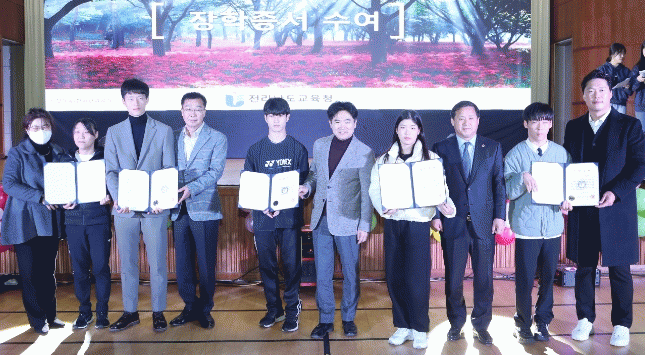 전국체육대회에 참가해 전남을 빛낸 체육 유망주들에게 장학증서가 수여됐고, 학생 선수들은 춤과 노래를 선보이는 장기자랑을 준비해, 뜨거운 박수를 받았다.