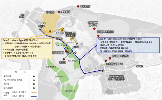 자율주행을 위한 전용도로, 충전 기반시설, 관제시스템, 정밀지도 시스템 등 주행 안정성 확보를 위한 기반시설도 함께 구축한다. 지금까지 지정된 시범 운행지구와 차별화해 스마트시티 구축단계부터 자율주행을 추진한다.