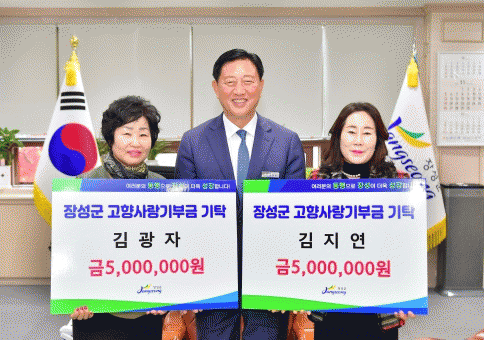 서현권 씨는 앞선 8월, 류송중 씨는 5월에 각 500만 원씩 장성군 고향사랑기부에 참여한 바 있다.