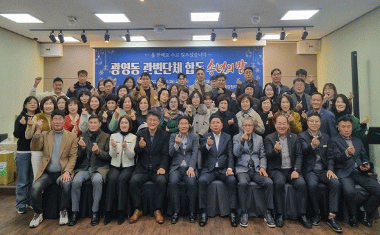 행사를 주관한 (재)광영장학회 김윤선 이사장은 “참석해 주신 모든 분께 올 한해 수고하셨다는 말씀을 드린다”면서 “다가오는 새해에는 앞서가는 광영동이 되도록 모두가 한마음 한뜻으로 힘을 모으자”고 말했다.