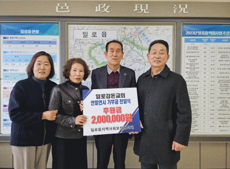 평소 사회공헌에 관심을 갖고 꾸준히 후원활동을 이어온 일로읍 감돈교회는 후원금을 전달하면서 “작은 정성이지만 어려운 이웃들에게 따뜻한 도움이 됐으면 좋겠다.”라고 전했다.