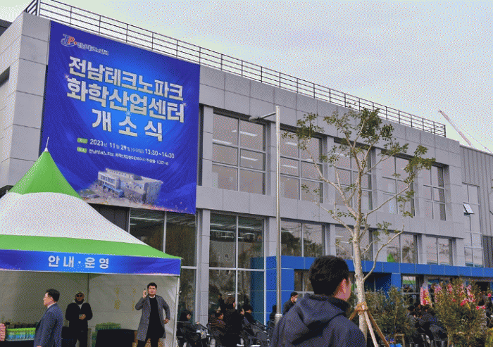 전남테크노파크 화학센터는 지난 2021년 산업통상자원부 스마트특성화 기반구축 사업인 ‘분해성 고분자소재 상용화 기반구축 공모’ 선정사업으로 건립됐다. 국비 60억 원을 포함해 총사업비 168억 원이 투입, 부지 4,743㎡에 건축 연면적 2,090㎡에 지상 2층 규모로 신축됐다.