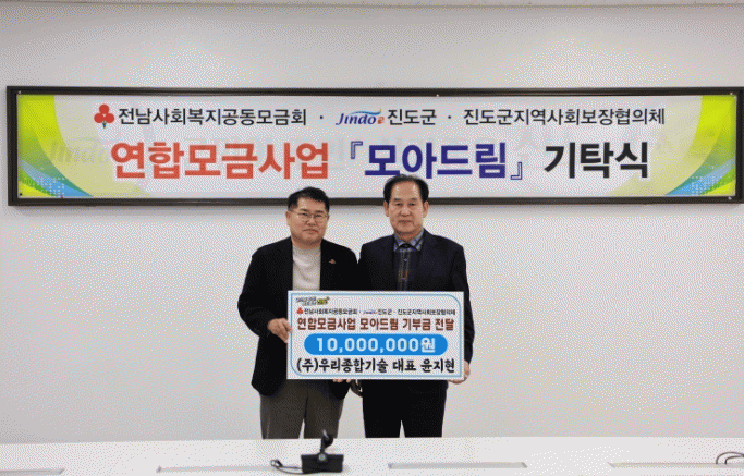 진도 출신인 윤지현 대표는 기탁식에서 “위기가구를 발굴하고 지원하는데 힘을 보태고 나눔문화 확산을 위해 참여했다”며 “추운 겨울, 소외계층이 따뜻하고 행복한 겨울을 보낼 수 있게 기부행렬이 이어지길 소망한다”고 말했다.