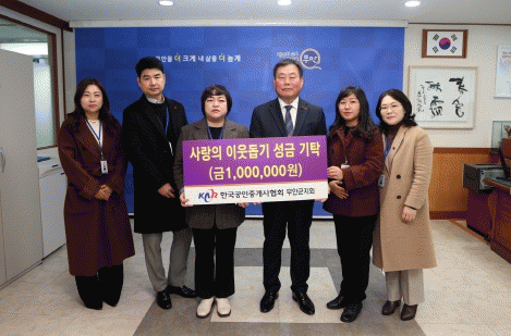 한국공인중개사협회 무안군지회 이지혜 지회장을 비롯하여 임원들은 “최근 한파와 물가상승으로 힘든 날들을 겪고 있는 주변 이웃들에게 조금이라도 보탬이 되고자 마음을 모으게 됐다”며 “생계에 어려움을 겪고 있는 이웃들에게 보탬이 됐으면 한다”며 기탁 소감을 밝혔다.