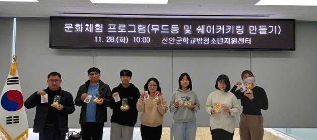 이번 행사는 신안군 내 학교 밖 청소년들에게 다양한 문화 체험을 제공하여 창의력과 표현력을 강화하고, 건전한 청소년의 성장을 촉진하기 위해 마카롱 만들기와 영화관람에 이어 무드등과 쉐이커키링 만들기 행사로 진행됐다.