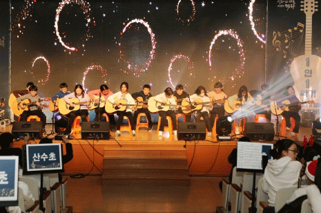 이날 구청 대회의실 무대에 오른 통기타 콘서트는 관내 6개 초등학교 127명의 학생들이 참여한 가운데 올 한해 ‘통기타가 있는 행복 교실’을 통해 익힌 다양한 곡을 연주하며 감동과 즐거움을 선사했다.