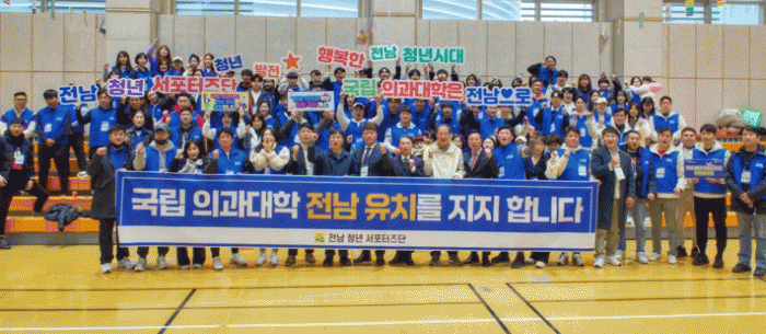 행사는 ▲청년 서포터즈단 결의문 낭독 ▲국립의과대학 전남 유치 퍼포먼스 ▲청년·소통 네트워킹 강화 ▲행운권 추첨 등 다채로운 행사와 청년리더 간 정보교류, 사기진작을 위한 화합의 시간 순으로 진행됐다.