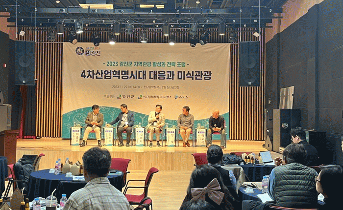 이어진 3부 주제 토론에서는 김완수 한국관광공사 광주전남지사장과 강진군문화관광재단 임석 대표가 발제자들과 함께 강진 관광활성화 전략 방안에 관해 다양한 토론을 나누고 참여자들과 소통하는 기회를 가졌다.