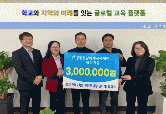 전남미래교육재단은 지난 12월 1일 전남교육청 산하 22개 지역교육지원청 일반직 과장(센터장) 협의회가 꿈 실현금 300만 원을 기부했다고 밝혔다.