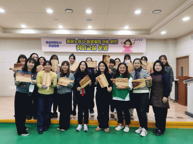 돌봄노동 활동가를 위한 취미교실은 여성친화도시 조성을 위한 사업으로 관내 사회복지, 교육, 여성복지를 위해 힘쓰는 종사자를 대상으로 각종 체험 프로그램을 제공해 사기를 높이고 활력을 재충전하는데 큰 역할을 하고 있다.