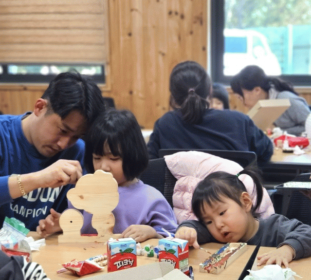 ‘숲 태교’는 축령산 치유의 숲에서 편백 아기용품을 함께 만들며 태아와 부모 간 애착을 형성하고, 산모의 심리적 안정을 도모한다.